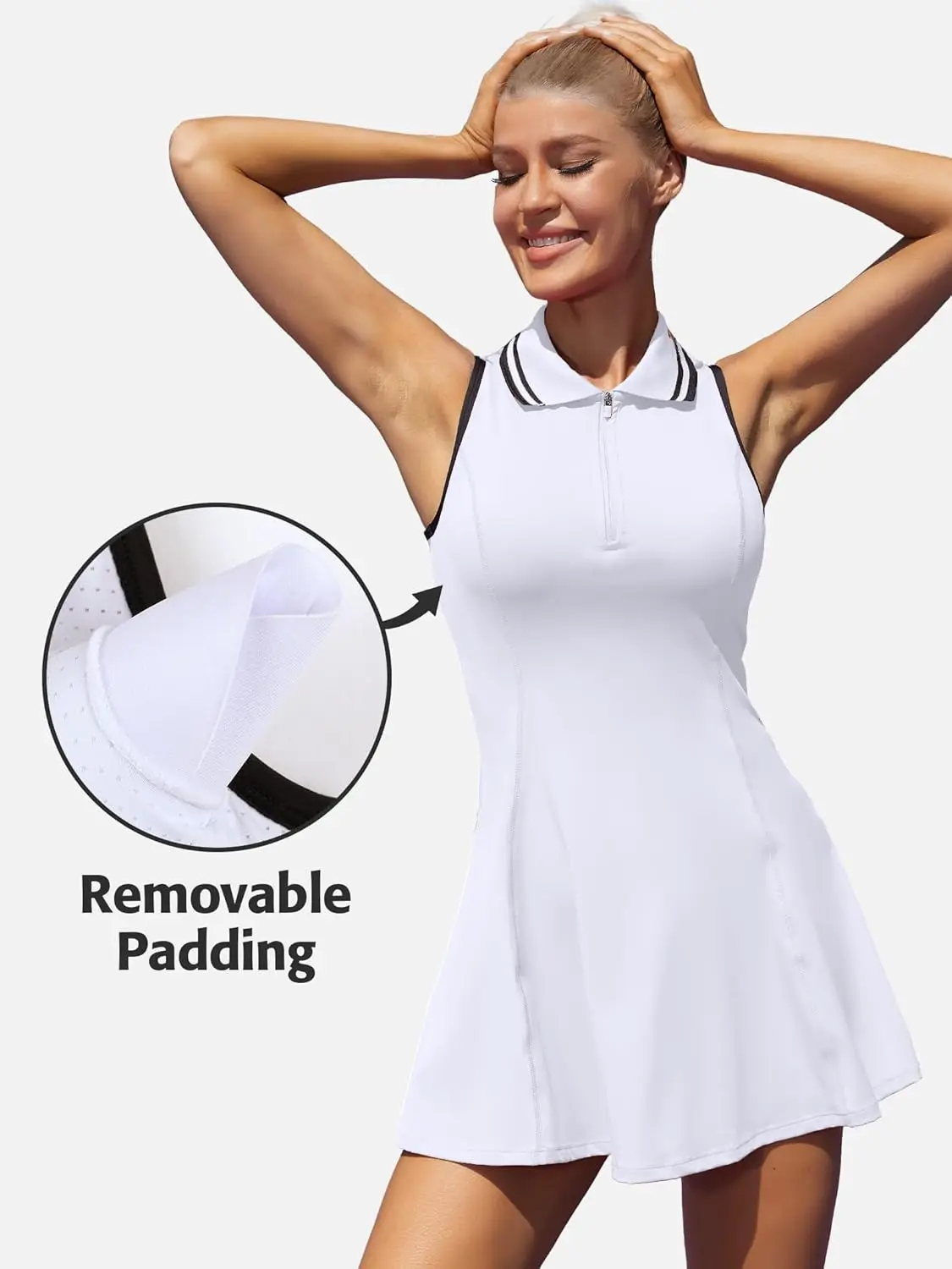 Anfilia Women Tennis Dress Polo Collar Zipper Neckline Built In Shorts With Pockets A-Line Silhouette Movable Pads Dress